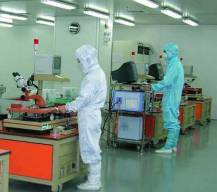 在测试时,晶圆被固定在真空吸力的卡盘上,并与很薄的探针电测器对准,同时探针与芯片的每一个焊接垫相接触(图4.18)。电测器在电源的驱动下测试电路并记录下结果。测试的数量、顺序和类型由计算机程序控制。测试机是自动化的,所以在探针电测器与第一片晶圆对准后(人工对准或使用自动视觉系统)的测试工作无须操作员的辅助。
